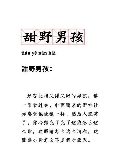 由于丁真的长相“野性与纯真并存”,在当下一众“小鲜肉”的审美中别具特色,网友还为他造了一个新词叫“甜野男孩”,并表示要背上氧气罐连夜赶路去高原找丁真。