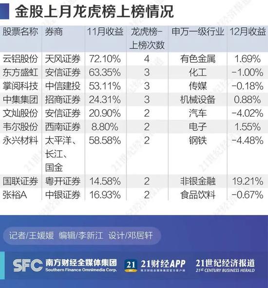 整体来看,上月上龙虎榜次数较多的个股,也都录得了相当不错的收益。