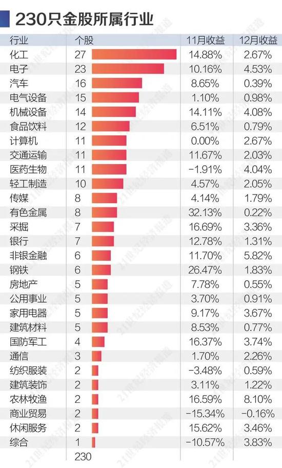 此外,也有金股在12月前几个交易日给出不错的成绩,涨幅较大的几只个股已经出现了逾20%的收益。