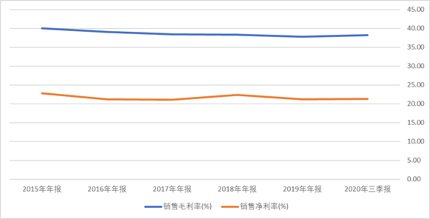 我们再来看个更为直观的数据,财报显示,苹果在近几年销售额基本不变的情况下,毛利率大概维持在38%左右,净利润则超过了20%。从下方这张图片可以看出,苹果追求的是毛利率,而非销售额。