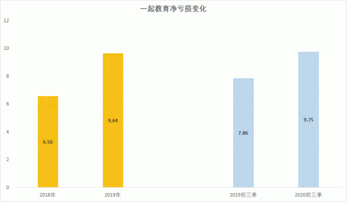 此外,费用高企也带来了一起教育的巨额亏损。前三季度,一起教育净亏损9.75亿元,同比增加24%,亏损额超越了去年全年。从2018年以来,一起教育分别亏损6.56亿、9.64亿、9.75亿,累计亏损近26亿元。常年巨额亏损下,一起教育未来的经营压力巨大。