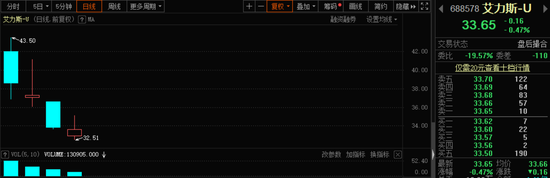 艾力斯-U在12月2日登陆科创板,出道首日即巅峰,此后股价一路下探,最新价33.65元/股,距离上市首日的最高点43.5元/股,已回撤近23%。以该股发行价22.73元/股计算,截至今日收盘,中1签的盈利在5460元。