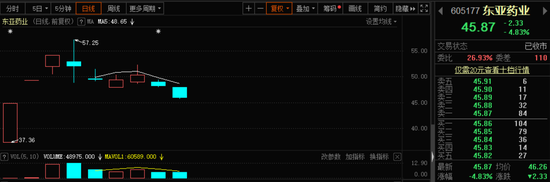 11月25日登陆上交所主板的东亚药业,上市第三天就开板,第四天股价摸高后一路下挫,最新价45.87元/股,距离高点已回落近20%。该股发行价31.13元/股,若以最新价计算,中1签1000股的盈利在14740元。