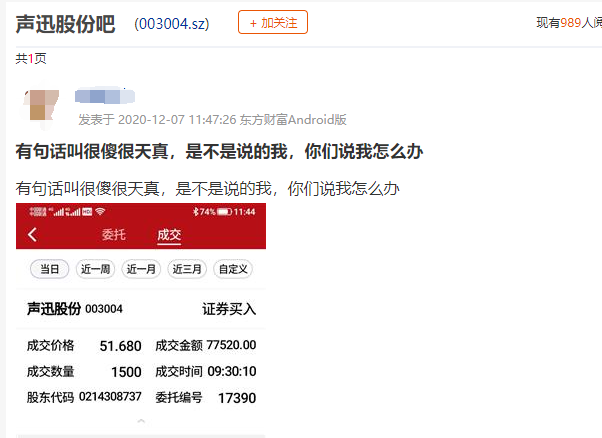 有股民直接晒出成交图,9:30:10以51.68元买入1500股,成交金额7.75万元,也就是以昨日收盘价成交,刚好吃了一个跌停。