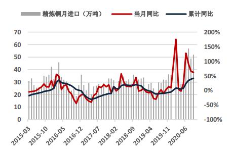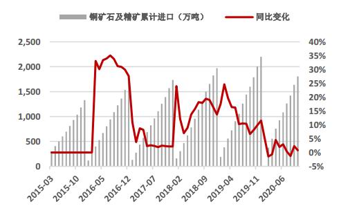10月份,国内精通产量91.4万吨,同比增长5.4%,1-9月累计增长6.1%,较1-8月提高0.3个百分点。从产量来看,国内铜生产呈加速恢复状态,但冶炼费仍在低位徘徊,表明冶炼产能与铜矿供给存在过剩矛盾。分析认为,随着疫情的逐步控制,未来铜矿生产将恢复正常。