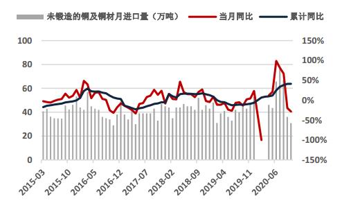 图5:未锻造铜及铜材进口累计值(单位:万吨)