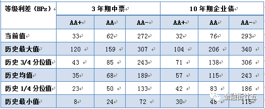 经过市场的剧烈调整,目前短久期的AA+级、AA级的等级利差回到历史均值水平,信用利差保护空间有所修复。低等级的利差保护空间较大,AA-级的等级利差维持在历史3/4分位数附近。