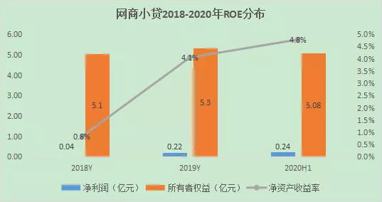 而网商小贷在2018年才完成增资将注册资本提至5亿元,2019年的所有这权益也才仅仅5.3亿元。