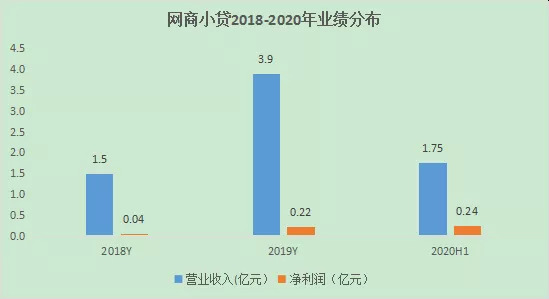 根据公开数据显示,网商小贷的营收从2018年的1.5亿元增至2019年的3.9亿元,净利润同期从0.04亿元增至0.22亿元。
