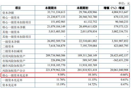该行今年9月末的核心一级资本充足率较上年末下降0.66个百分点。银保监会披露的数据显示,截止今年三季度末,商业银行核心一级资本充足率为10.44%。