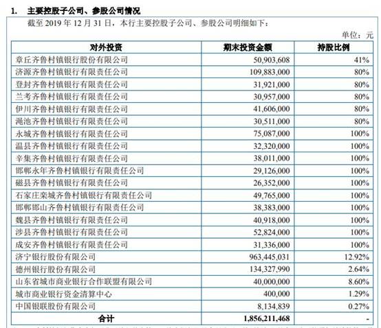 招股书显示,齐鲁银行在天津、青岛、聊城、泰安、德州、临沂、滨州、东营、烟台、日照等地开设分支行,发起成立了章丘齐鲁村镇银行,并在河南、河北控股15家村镇银行。合计控股16 家村镇银行。
