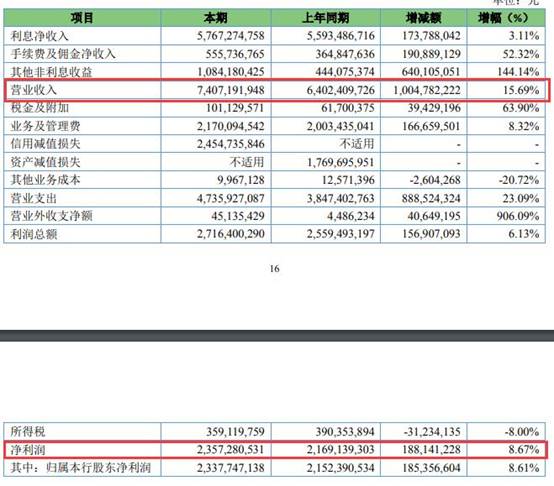 2016年、2017年、2018年、2019年,齐鲁银行实现营业收入51.54亿元、54.26亿元、64.02亿元、74.07亿元,净利润16.54亿元、20.26亿元、21.69亿元、23.57亿元,扣除非经常性损益后归属于本行普通股股东的净利润分别为16.20亿元、19.95亿元、19.56亿元、22.00亿元,经营活动产生的现金流量净额分别为161.29亿元、53.47亿元、80.10亿元、98.72亿元。