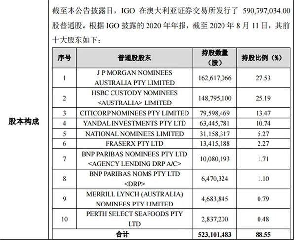 财务数据显示,至今年6月底,IGO的资产合计111.6亿元,所有者权益合计93.7亿元。2020财年营业总收入43亿元,归属于母公司所有者净利润7.5亿元。据公告,IGO拟通过股权融资、债务融资以及自有现金约1亿美元来完成本次交易的款项支付。