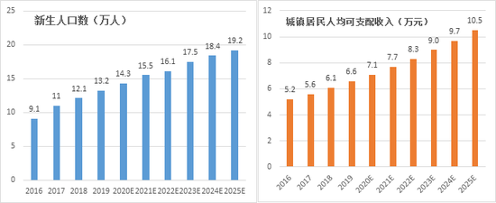 一方面,杭州新生人口增长迅速。根据Frost&Sullivan数据统计显示,在2016年至2018年杭州新生人口数年复合增长率达到15.4%,增长速度较快,2019年杭州新生人口数达到13.2万人。预计杭州2019年至2025年年复合增长率达到6.4%,2025年新生人口数将达到19.2万人。