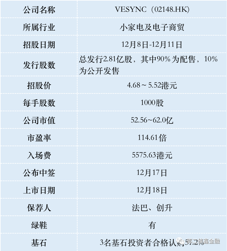 Vesync此次IPO引入3名基石投资者,其中高瓴资本认购6466万美元、Meridian Future及Orchid China and LMA SPC,分别认购2000万、1000万美元股份,合共认购9466万美元,以发行中间价计算,占全球发行股份总数的51.2%,有6个月禁售期。
