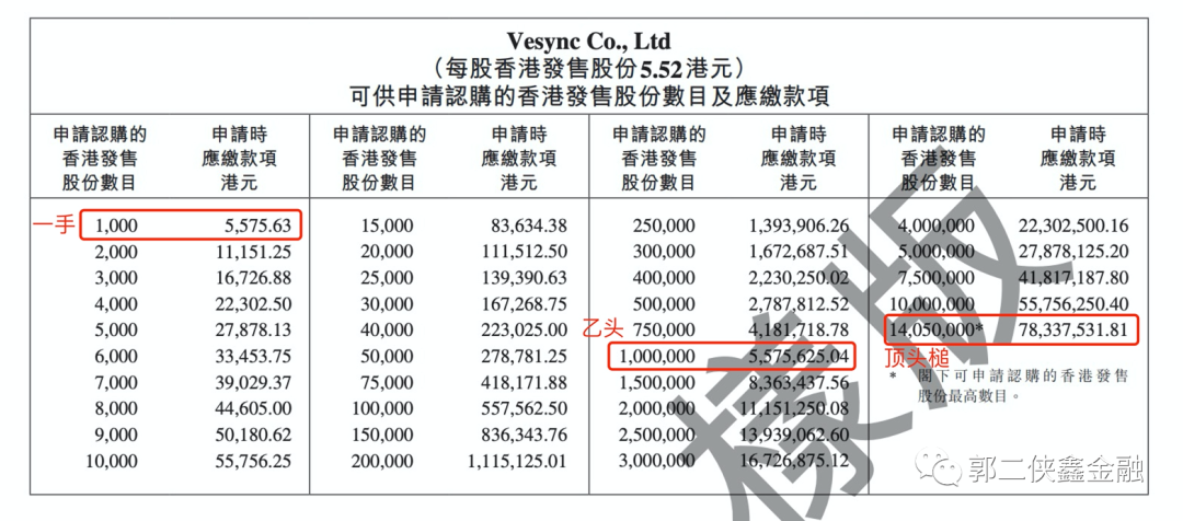 香港公开发售2810万股,每手1000股,合计28100手,在不启动回拨的情况下,甲乙组各获配14050手。