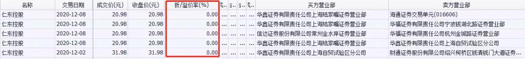 前有张良计,后有过墙梯。老虎财经发现,仁东控股在12月2日和12月8日盘后大宗交易记录中,于12月8日出现四笔“零折价”转让仁东控股股票的情况。