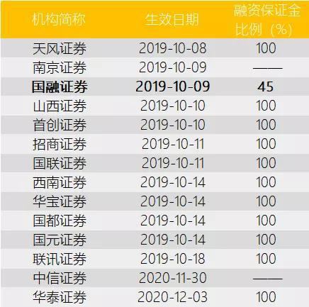 而尤其值得注意的是,在将仁东控股列入融资标的的14家券商中,唯独国融证券给出的融资保证金比例低至45%,其约合两倍以上投资杠杆率。