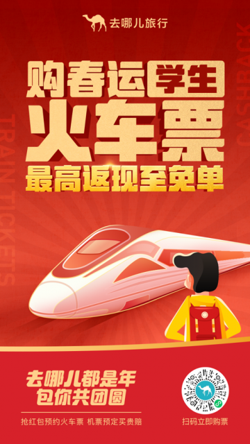 去哪儿数据显示,进入12月以来,与春节相关的旅行产品搜索量同比增长9倍;春运期间机票、火车票以及度假酒店成为搜索热度最高的三个品类。据了解,12月1日起,去哪儿已经开始2021年春节活动。为方便学生寒假回家,去哪儿推出“去哪儿都是年,包你共团圆”活动,儿童、学生以及新用户在去哪儿平台预订火车票、出行后可在订单详情页申请返现,最高免单。