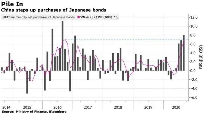 仅在7月份,中国就购买了7239亿日元(约合454.6亿人民币),是自2017年1月以来的最大单月购买量。