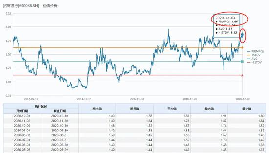 比如招商银行12月以来的平均市净率1.85倍,出于2012年以来的8年高位。平安银行市净率为最近5年高位,宁波银行市净率也出于近9年高位。