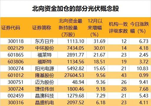 光伏概念股集体飙涨,“十四五”期间行业需求将大增,龙头公司密集扩产,10股北向资金抢先加仓