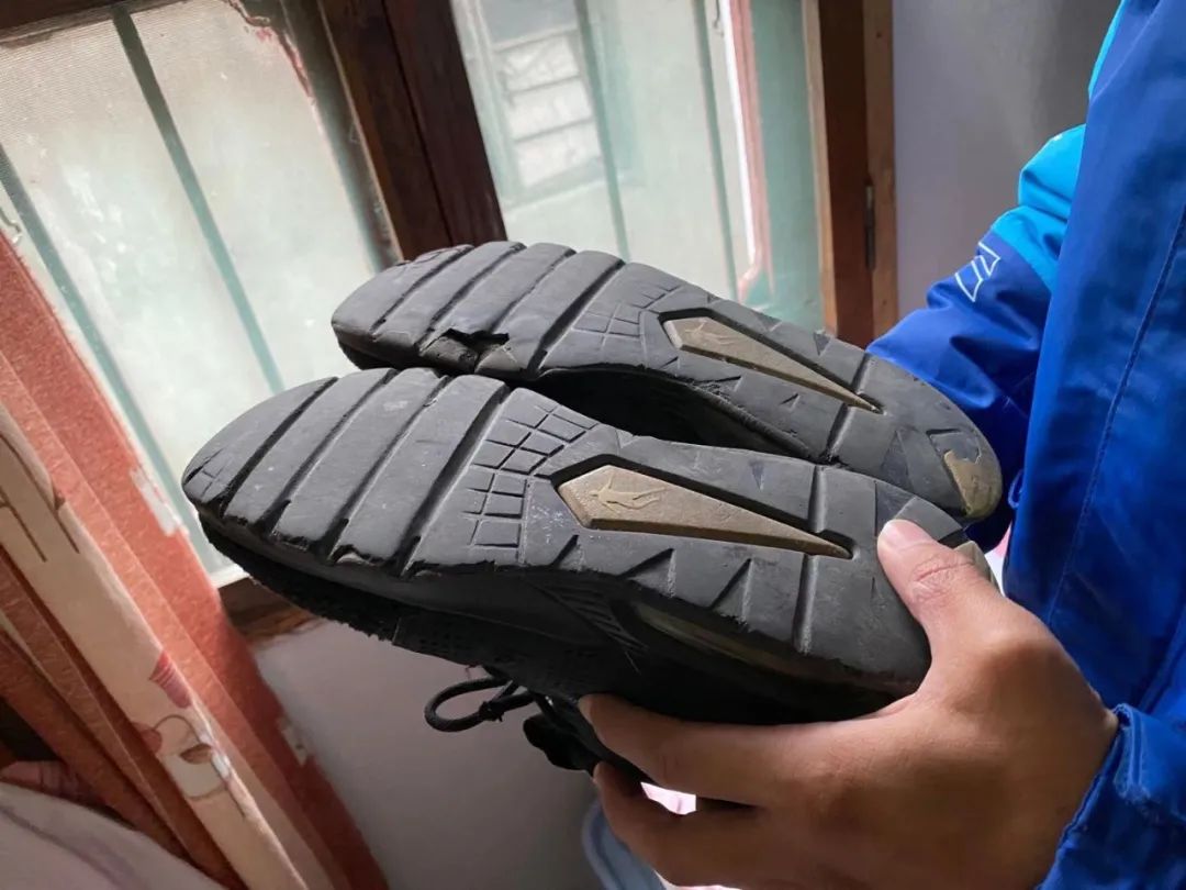 买了新鞋,有了别人捐赠的鞋子后,戴子没有急着将这双海绵都已经露出来,后跟已然破损的运动鞋扔掉。