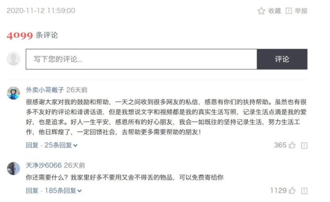 如今,戴子在抖音上的粉丝涨到了4.8万。他表示,之所以坚持拍摄和记录生活的点滴。既是对自己的鼓舞,也想通过这件事,让更多人知道外卖小哥这个群体的青年也是热爱生活的。面对生活不轻易低头!
