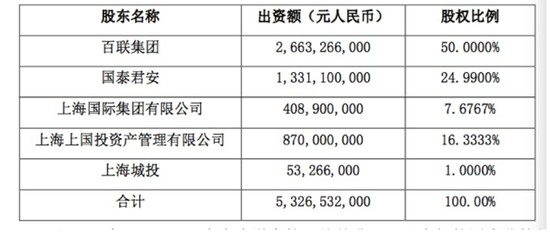 增资完成后,百联集团对上海证券的持股比例为50%,国泰君安对上海证券的持股比例由增资前的51%降低至24.99%。上海证券不再纳入国泰君安合并报表范围,百联集团正式成为上海证券的控股股东。