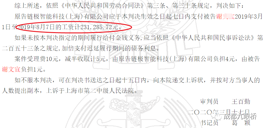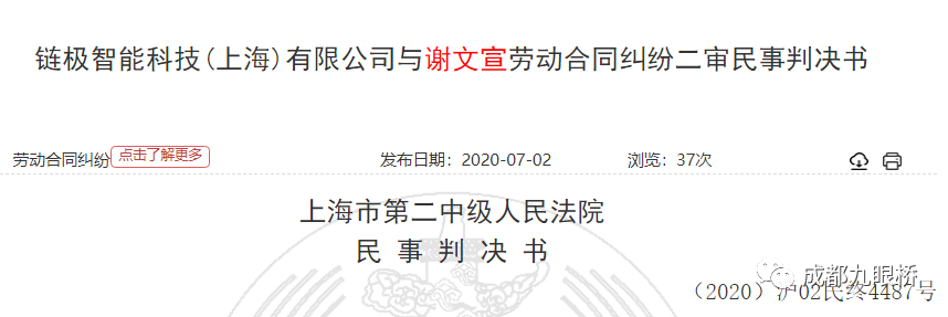 2020年3月,上海静安区人民法院发布一则《民事判决书》,案件主角是链极科技与曾经的自家员工谢某某,链极科技为原告。