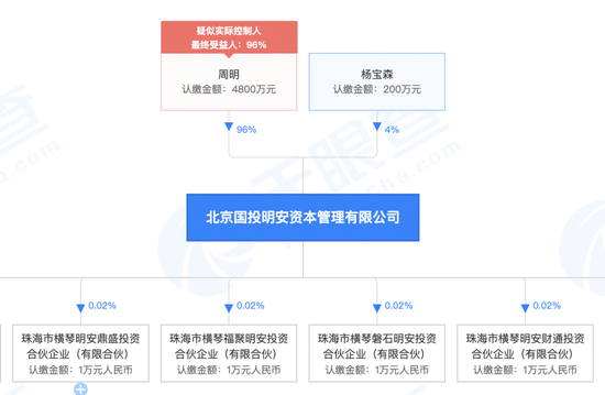 据天眼查数据显示,北京国投明安资本管理有限公司成立于2015年,注册资本5000万,实缴资本4260万元,实际控制人为周明。