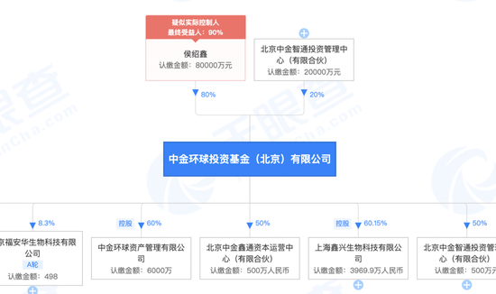 据介绍,中金环球是一家以基金管理、投资与投融资管理、投资咨询、高端财富管理等为主营业务的专业基金管理机构。实际控制人为侯绍鑫,持股占比80%,此外北京中金智通投资管理中心(有限合伙)持股占比20%。