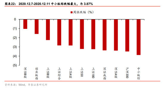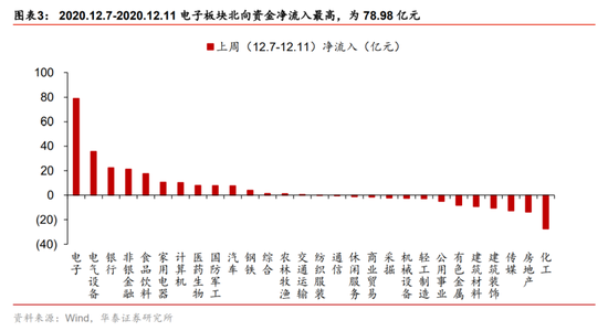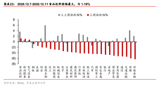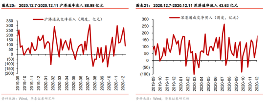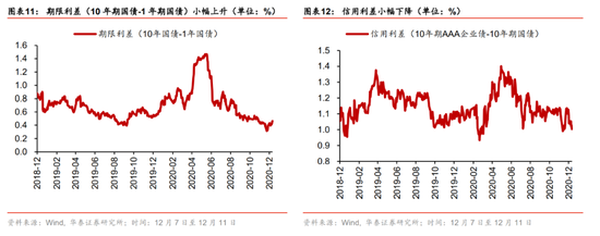 从市场结构看,12月以来顺周期板块内部分化:1)银行等大金融板块由强转弱;2)上游钢铁、采掘,以及抗通胀能力较强的食品饮料持续强势,我们认为上周市场弱势以及结构变化反映市场对信用拐点担忧和再通胀预期升温。此外,近期涨价主线下不同品种市场表现分化,上游原材料明显强于中游高端制造品(面板、芯片等),我们认为关键变量在于产能:1)工业企业2020Q3产能利用率仅为76.7%,尚有较大提升空间,对应原材料涨价对上游盈利传导机制顺畅;2)面板、芯片龙头公司产能已经接近饱和,且价格已提前协议锁定,对应盈利传导机制不顺(需等新增产能释放)。