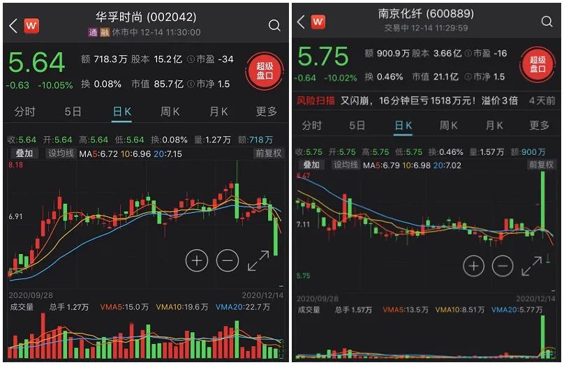 12月10日一度出现“天地板”走势的南京化纤继12月11日跌停之后,今日“一字板”跌停。截至午间收盘,南京化纤成交额为900.9万元,跌停板上的封单为16.2万手。