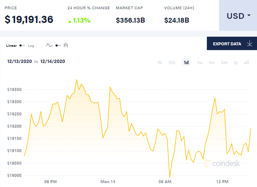 12月初,比特币价格创下19844美元的历史新高,超过了2017年12月创下的历史高点。尽管此后有所回落,但目前仍有望冲击20000美元的大关。