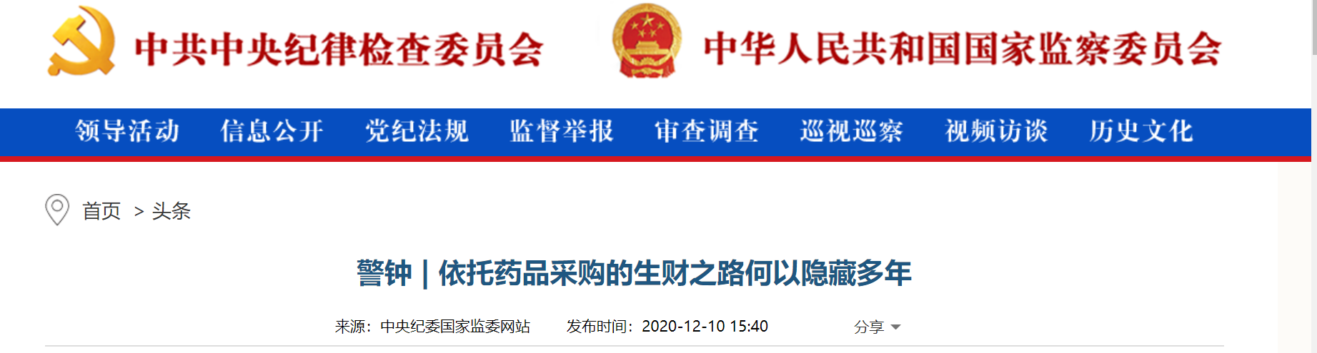 警钟" 依托药品采购的生财之路何以隐藏多年