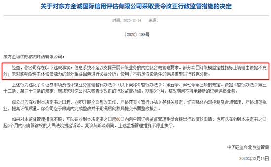 12月14日,北京证监局公布了对东方金诚国际信用评估有限公司(下称“东方金诚”)采取责令改正行政监管措施的决定,剑指东方金诚的内控及合规管理问题。