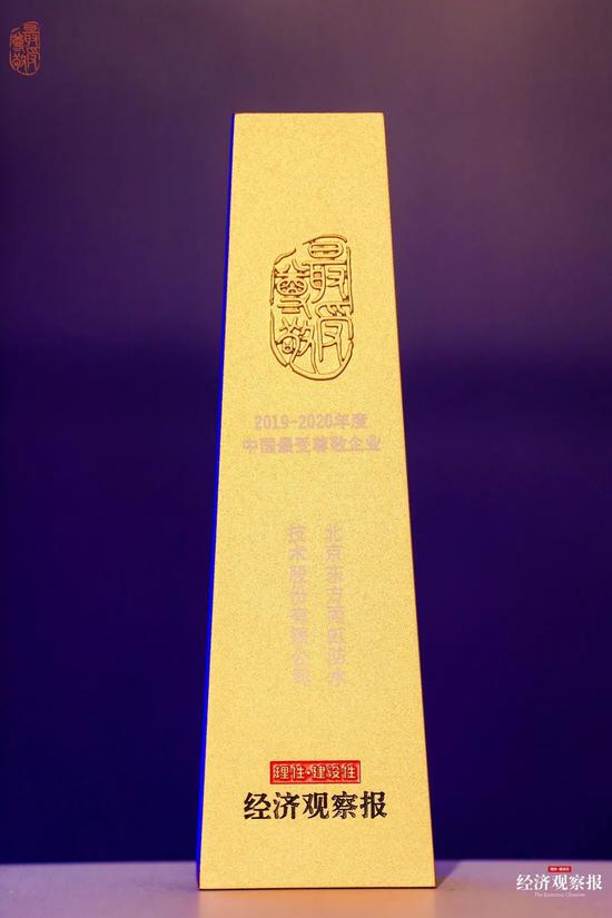 聚力向新,起而行之。12月14日,由《经济观察报》主办的2019-2020年度“中国最受尊敬企业年会”在北京隆重举行。东方雨虹(ORIENTAL YUHONG)凭借创新引领,环保低碳、社会责任等方面的突出表现,获评“2019-2020年度受尊敬企业”。