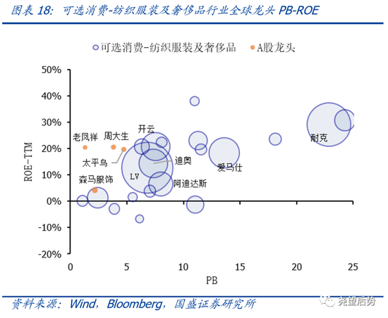PE-G角度:A股龙头PE偏低,但业绩增速占优,PE-G下更具优势。尽管A股纺服及奢侈品龙头与全球龙头仍有较大差距,但其业绩增速更优,PE也更低。