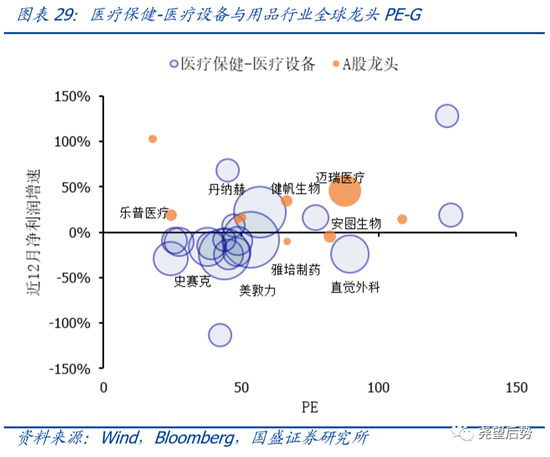 PE-G角度:A股龙头PE偏高,业绩增速中等,PE-G下部分龙头偏高。恒瑞医药等估值显著高于全球龙头,业绩增速并不占优。