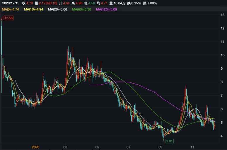 2019年10月25日,该公司在纳斯达克证券交易所挂牌上市,其股价在上市当天冲高至12.56美元/股后,股价便多在个位数间波动震荡。
