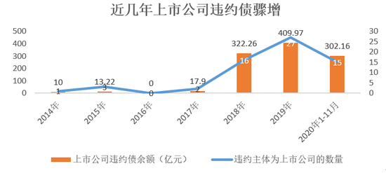上市公司陷入困境的表现之一是债券违约。2018年以来上司公司违约债骤然增加,并连续三年保持在较高水平。