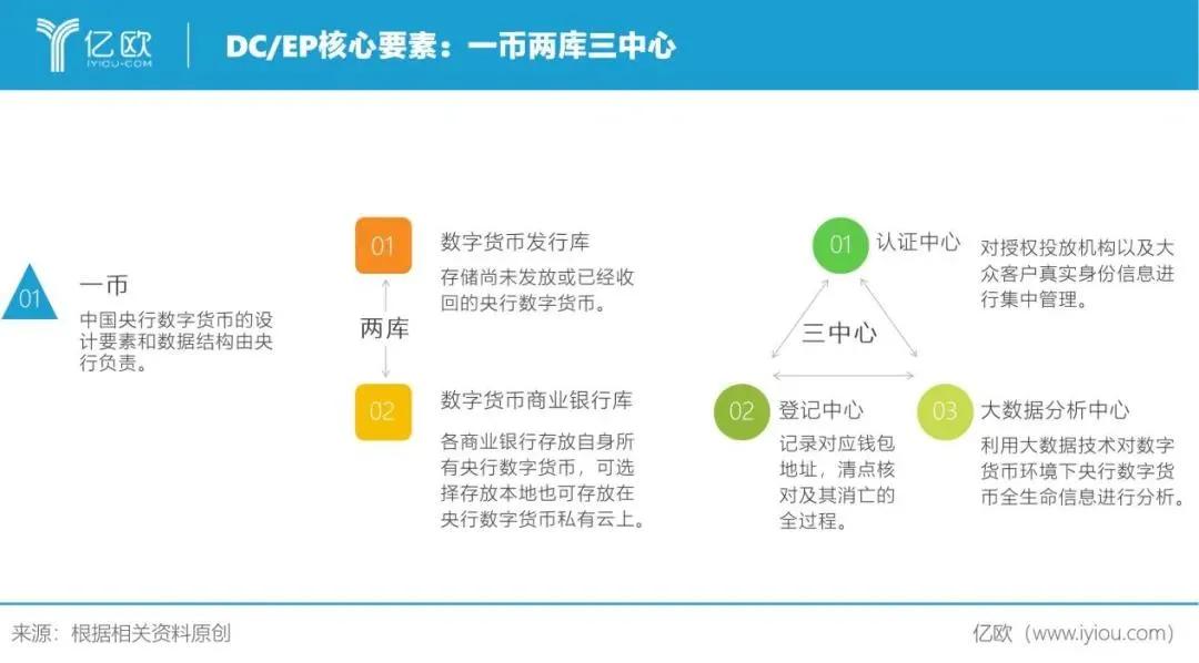 根据央行发布的数字货币的核心要素“一币、两库、三中心”,其中的两库即数字货币发行库和数字货币商业银行库。