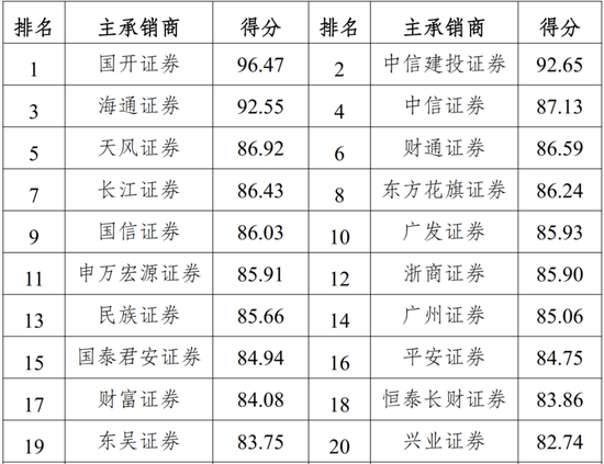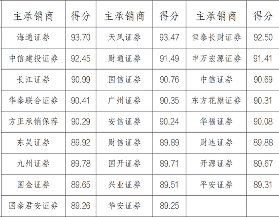 其中A类主承销商26家,平均得分90.58分;B类主承销商48家,平均得分79.16分;C类主承销商13家,平均得分66.91分。