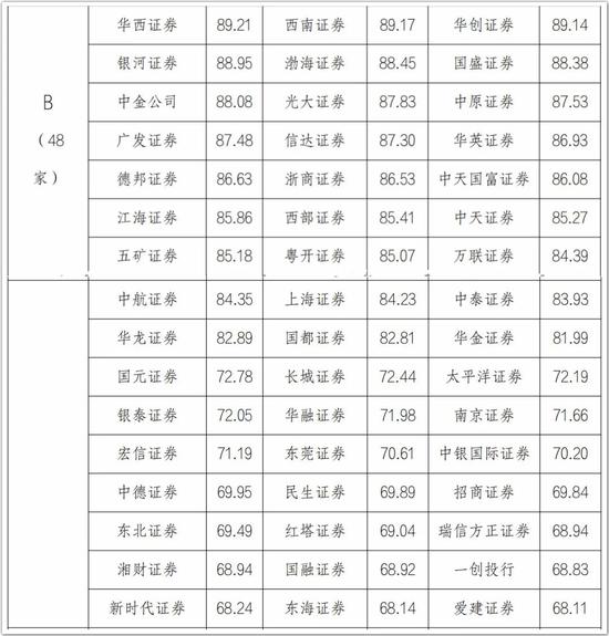 48家获B类评级的券商