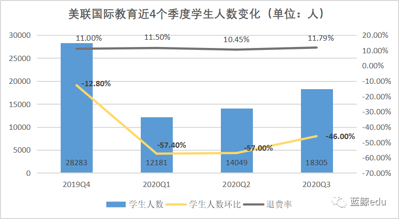 此外,近4个季度,美联国际教育的退费率始终居高不下,退费问题始终考验着美联国际教育的现金流。