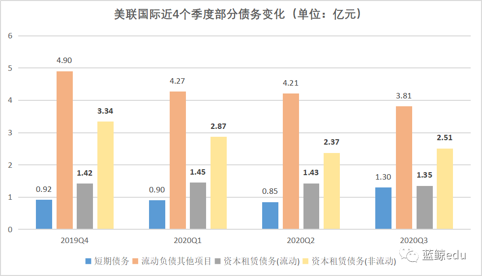 与此同时,美联国际教育的资本租赁债务居高不下。近4个季度,资本租赁合计占总负债比重分别达到28%、27%、25%、25%。