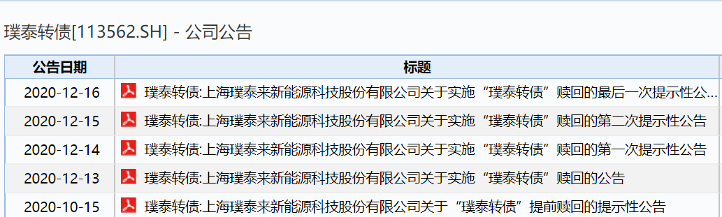 此前,发行人连续发布提示公告,称从赎回登记日次一交易日(2020年12月21日)起,璞泰转债将停止交易和转股;本次提前赎回完成后,璞泰转债将从交易所摘牌。特别提醒璞泰转债持有人注意在期限内及时转股或卖出。