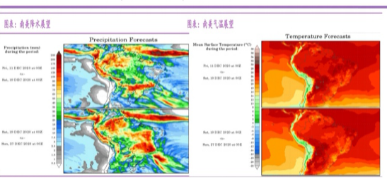 南美市场方面来看,南美天气变化对大豆市场影响甚深。随着就近而来的雨水天气,土壤墒情已经有所改善。据气象台预报显示,最近巴西中部和南部以及阿根廷北部地区仍将出现大范围的降雨过程,持续的降雨预期,将给先前的干旱情况带来缓解,对喜好雨水的大豆作物给予更好的生长发育,产量也将渐进。