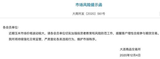 12月4日,大商所发布《市场风险提示函》称“近期铁矿石市场价格波动较大,请各会员单位切实加强投资者教育和风险防范工作,提醒客户理性合规参与期货交易。我所将持续强化日常监管,严肃查处各类违规行为,维护市场秩序。”